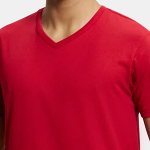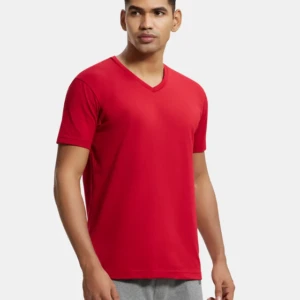 Super Combed Cotton Rich Solid V Neck Half Sleeve T-Shirt – Shanghai Red