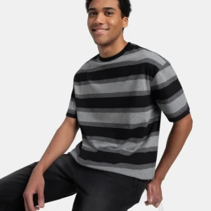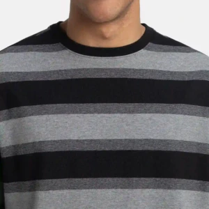 Super Combed Cotton Rich Striped Oversized T-Shirt – Mid Grey Melange & Black