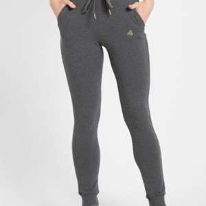 Women’s Super Combed Cotton Elastane French Terry Slim Fit Joggers With Zipper Pockets – Charcoal Melange
