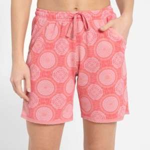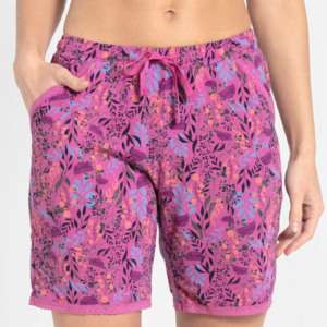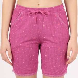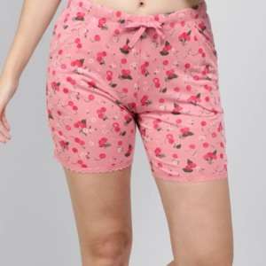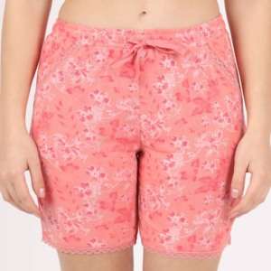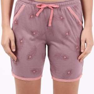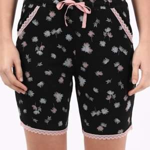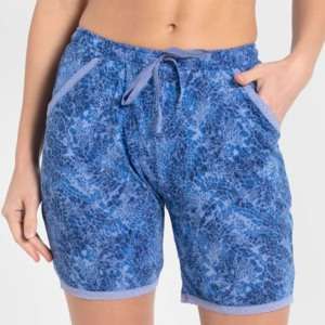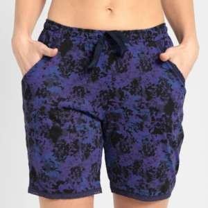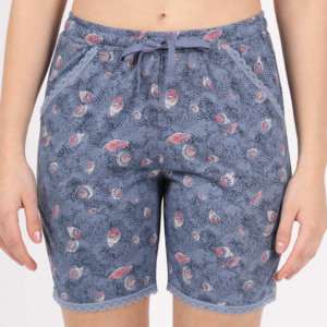 Women’s Micro Modal Cotton Relaxed Fit Printed Shorts with Lace Trim Styled Side Pockets – Iris Blue