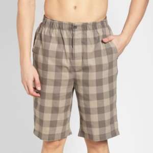 Men’s Super Combed Mercerized Cotton Woven Fabric Regular Fit Checkered Bermuda with Side Pockets.