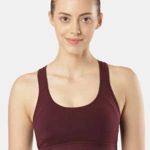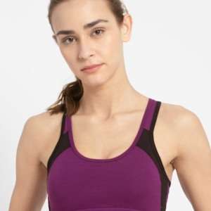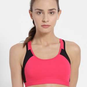 Women’s Wirefree Padded Super Combed Cotton Elastane Stretch Printed Full Coverage Racer Back Styling Active Bra with Stay Fresh and Moisture Move Treatment – Ruby Assorted