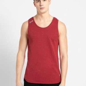 Men’s Super Combed Cotton Blend Solid Low Neck Tank Top With Breathable Mesh and Stay Fresh Treatment – Team Red